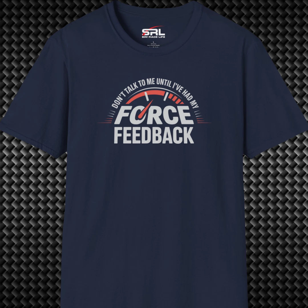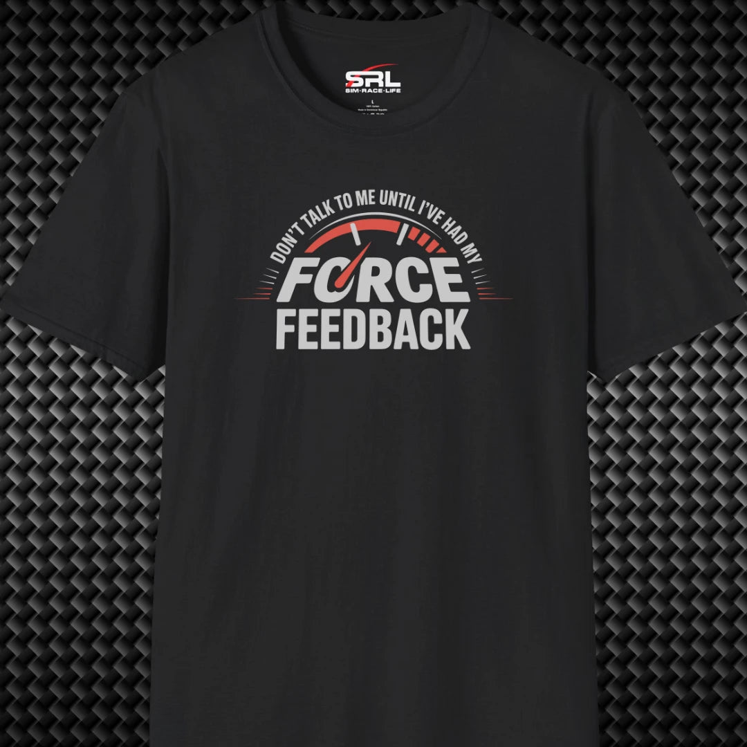 Some need caffeine. You? You need torque. This tee speaks every sim racer’s truth that life doesn’t start until the wheel kicks back. Wear it and show the world you run on force feedback, not fortune cookies, and belong to the real sim racing tribe.
